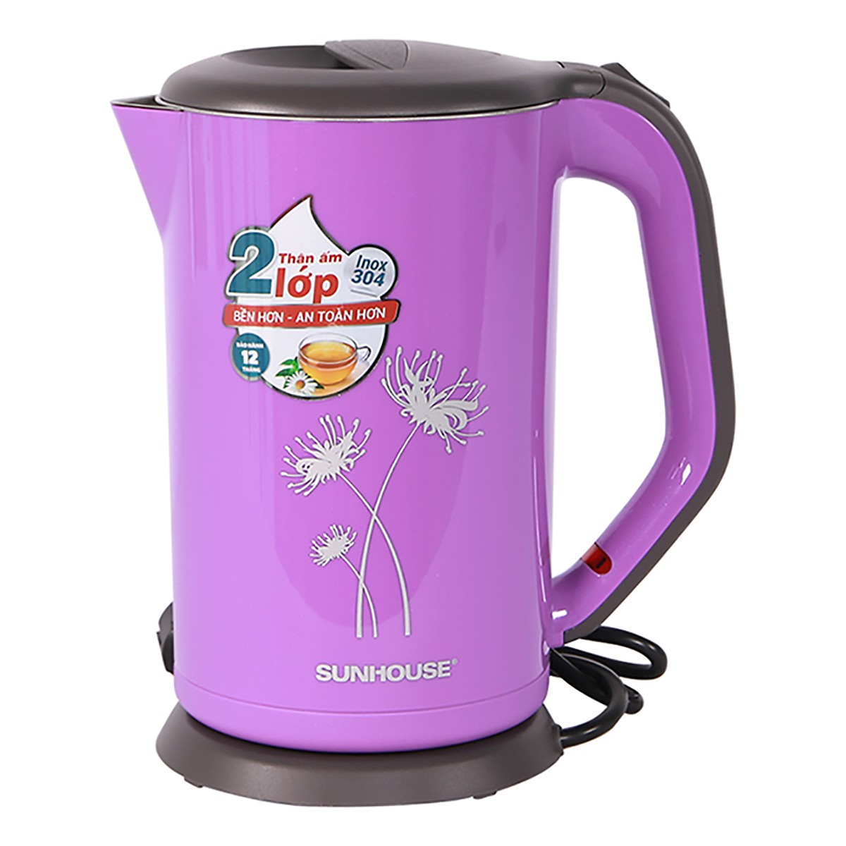 Nổi bật với thiết kế trang nhã và màu sắc trẻ trung, ấm siêu tốc inox 2 lớp SUNHOUSE SHD1383P màu tím là sự lựa chọn phù hợp cho những căn bếp hiện đại. Ấm có dung tích lớn 1.7 lít cùng công suất hoạt động cao (1800W) giúp việc đun nước nhanh chóng hơn, tiết kiệm thời gian và điện năng tối đa.