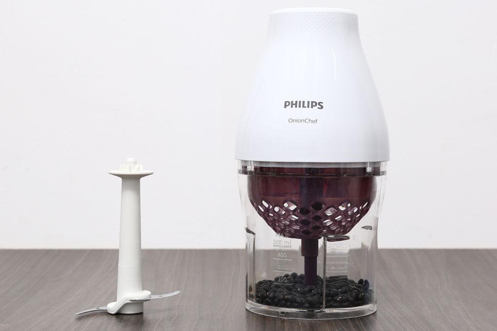 Công suất mạnh mẽ 500 W, lưỡi dao sắc bén bằng thép không gỉ xay nhuyễn thực phẩm nhanh chóng, tiết kiệm điện năng và thời gian tiêu thụ