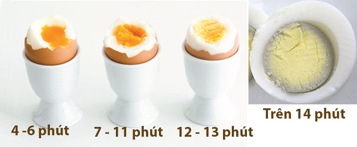 - Trứng chín (lòng đỏ và lòng trắng được phân định rõ ràng): luộc 12 – 13 phút